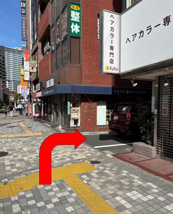 ⑦「青梅珈琲店」の手前を右折し、細い通りに入ります。